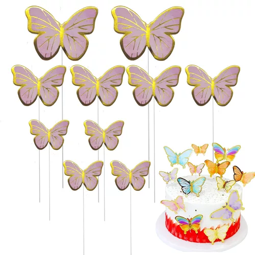 10 darabos torta dekoráció, torta beszúró – Pillangó – Rózsaszín