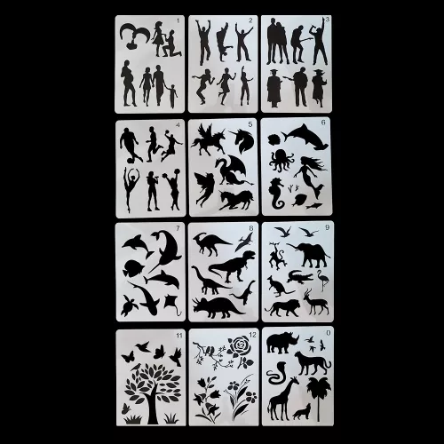 Tortadíszítő stencil és sablon vegyes mintákkal, melynek segítségével egyszerűen díszíthetjük tortáinkat, süteményeinket.