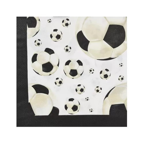 16 darabos focilabda mintájú papír szalvéta, melynek a segítségével minden kis futballrajongónak egy igazán különleges világot varázsolhatunk a születésnapi party-jára.