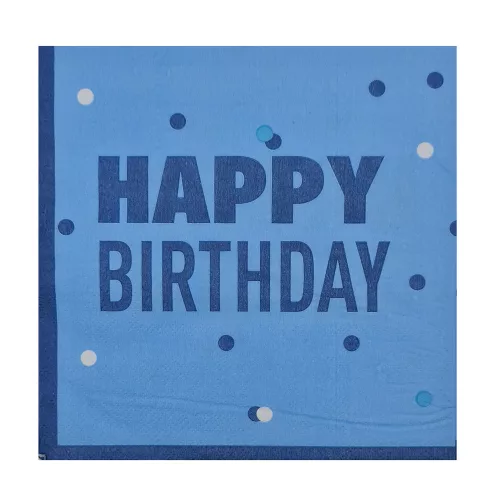 16 darabos kék színű, Happy Birthday feliratú papír szalvéta, mellyel feldobhatod minden szülinapos ünnepi asztalát.