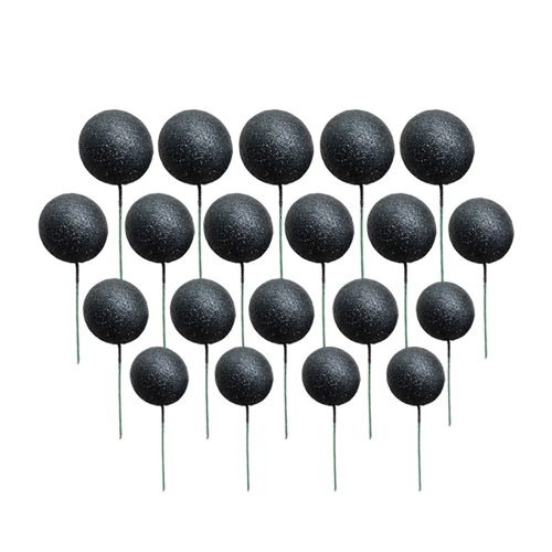 20 darabos, fekete színű, glitteres műanyag gömb dekoráció, melynek segítségével különleges tortadekorációkat tudsz készíteni.
