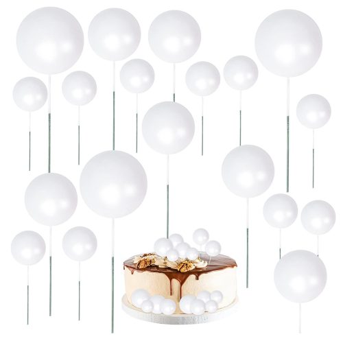 20 darabos, fehér színű műanyag gömb dekoráció, melynek segítségével különleges tortadekorációkat tudsz készíteni.