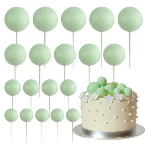 20 darabos, pasztell zöld színű műanyag gömb dekoráció, melynek segítségével különleges tortadekorációkat tudsz készíteni.