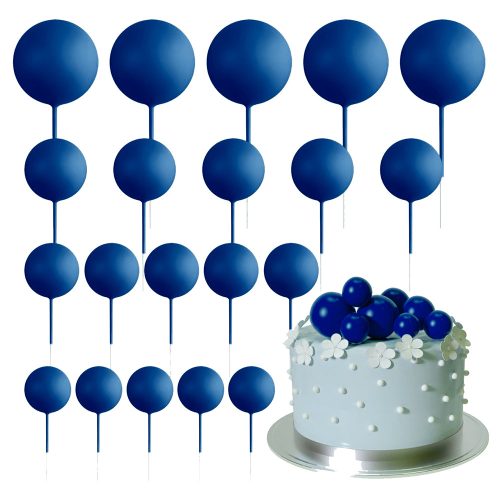20 darabos, sötét kék színű műanyag gömb dekoráció, melynek segítségével különleges tortadekorációkat tudsz készíteni.