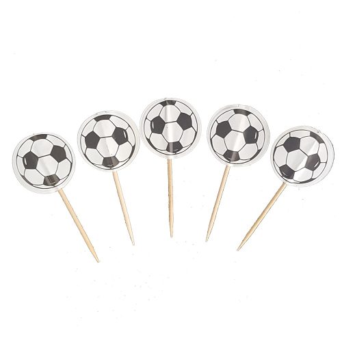 20 darabos sütemény beszúró, focilabda mintával, mellyel Te is egyszerűen díszítheted az elkészült süteményeket, muffinokat.