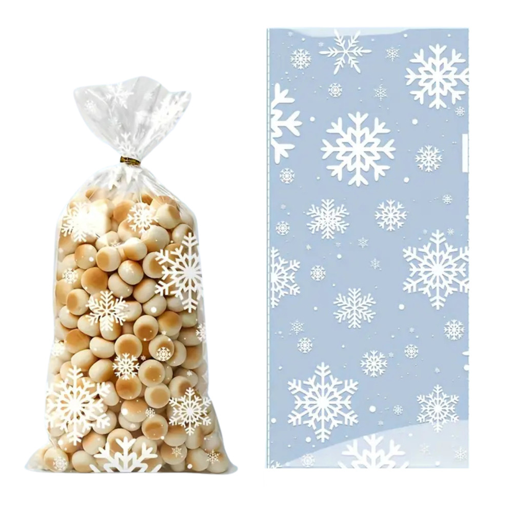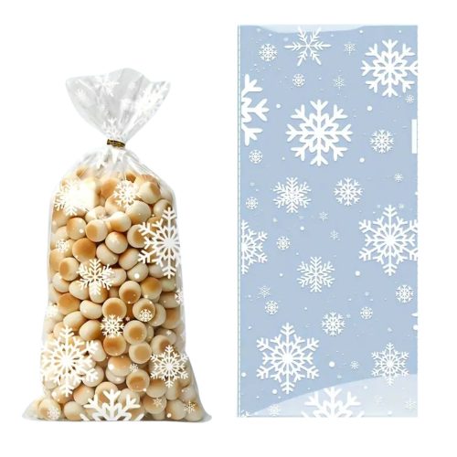 Varázsold ünnepivé az ajándékozást ezekkel a gyönyörű, hópehely mintás celofán zacskókkal!