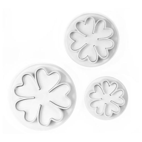 3 darabos rúgós marcipán, fondant és sütemény kiszúró 5 levelű virág, szív alakú szirmokkal.