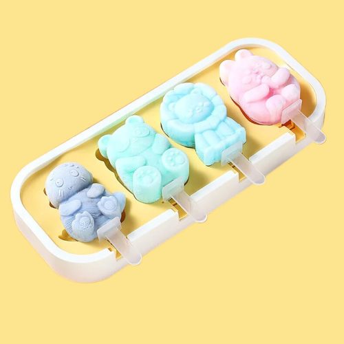 4 részes szilikon jégkrém készítő forma – Vegyes állat minta – Dinó, panda, oroszlán és nyuszi