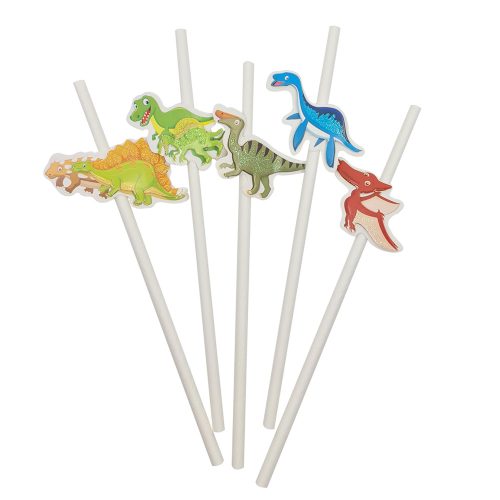 Egy születésnapi buliban vagy egy nyári kerti party-n is különleges kiegészítő lehet ez a dinoszaurusz mintás papír szívószál szett.