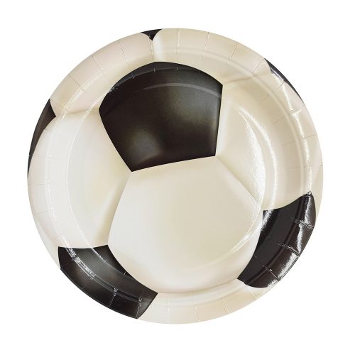 6 darabos focilabda mintájú papír tányér, melynek a segítségével minden kis futballrajongónak egy igazán különleges világot varázsolhatunk a születésnapi party-jára.