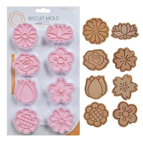 8 darabos műanyag süteménykiszúró és nyomda – Virágok