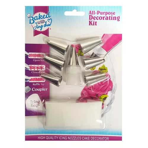 9 részes tortadíszítő szett – Habzsákkal, díszítőcsövekkel és csatlakozóval