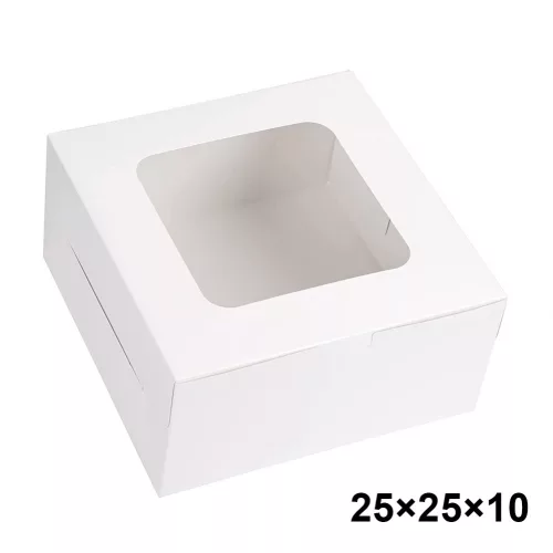 Ablakos süteményes doboz – Fehér – 25 cm × 25 cm