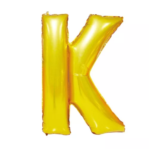 Arany színű, betű alakú fólia lufi, léggömb – K
