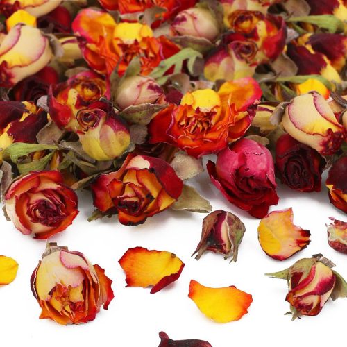Sárga és piros színű ehető szárított rózsabimbók, melyeket felhasználhatunk tortáink és süteményeink díszítéséhez, de díszíthetünk vele macaront vagy éppen a vacsorához feltálalt húsokat vagy salátákat.