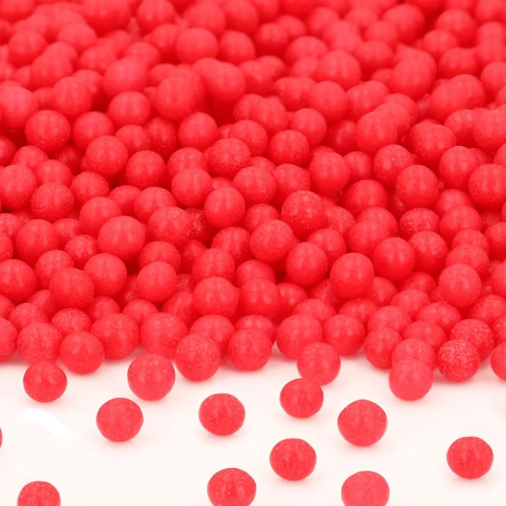 A piros gyöngyök klasszikus ünnepi hangulatot sugároznak, így kiválóan illenek karácsonyi, Valentin-napi, születésnapi vagy bármilyen alkalmi desszerthez. A méretük (5 mm) miatt jól látható, elegáns dekorációt biztosítanak, anélkül, hogy túl hivalkodóvá válnának.