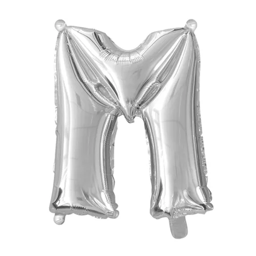 Ezüst színű, betű alakú fólia lufi, léggömb – M