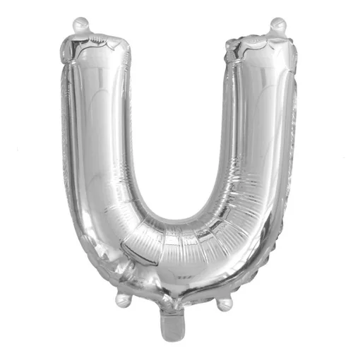 Ezüst színű, betű alakú fólia lufi „U” betűvel, melyet használhatsz születésnapra, névnapra, de akár egy céges partykra is használhatod dekorációként.