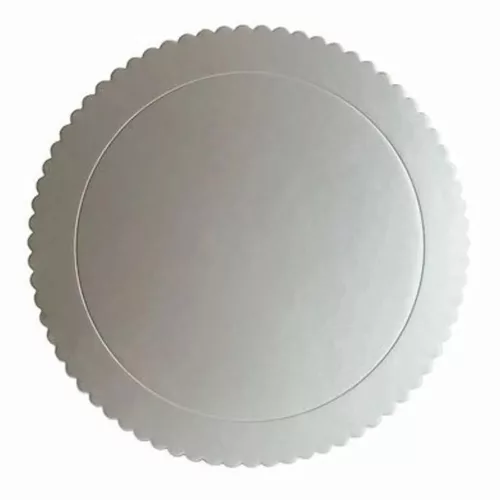 30 cm átmérőjű, ezüst színű kör alakú fodros karton tortaalátét, mellyel stabilabb alátámasztást adhatsz tortáidnak, vagy éppen süteményeidnek.