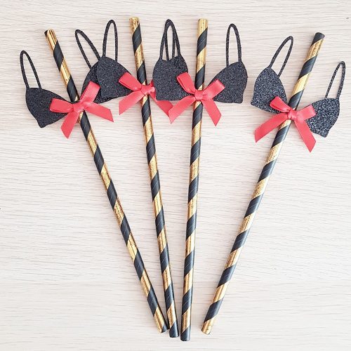 Egy születésnapi buliban, egy lánybúcsúban, de akár egy kerti party-n is különleges kiegészítő lehet ez a melltartó mintás papír szívószál szett.