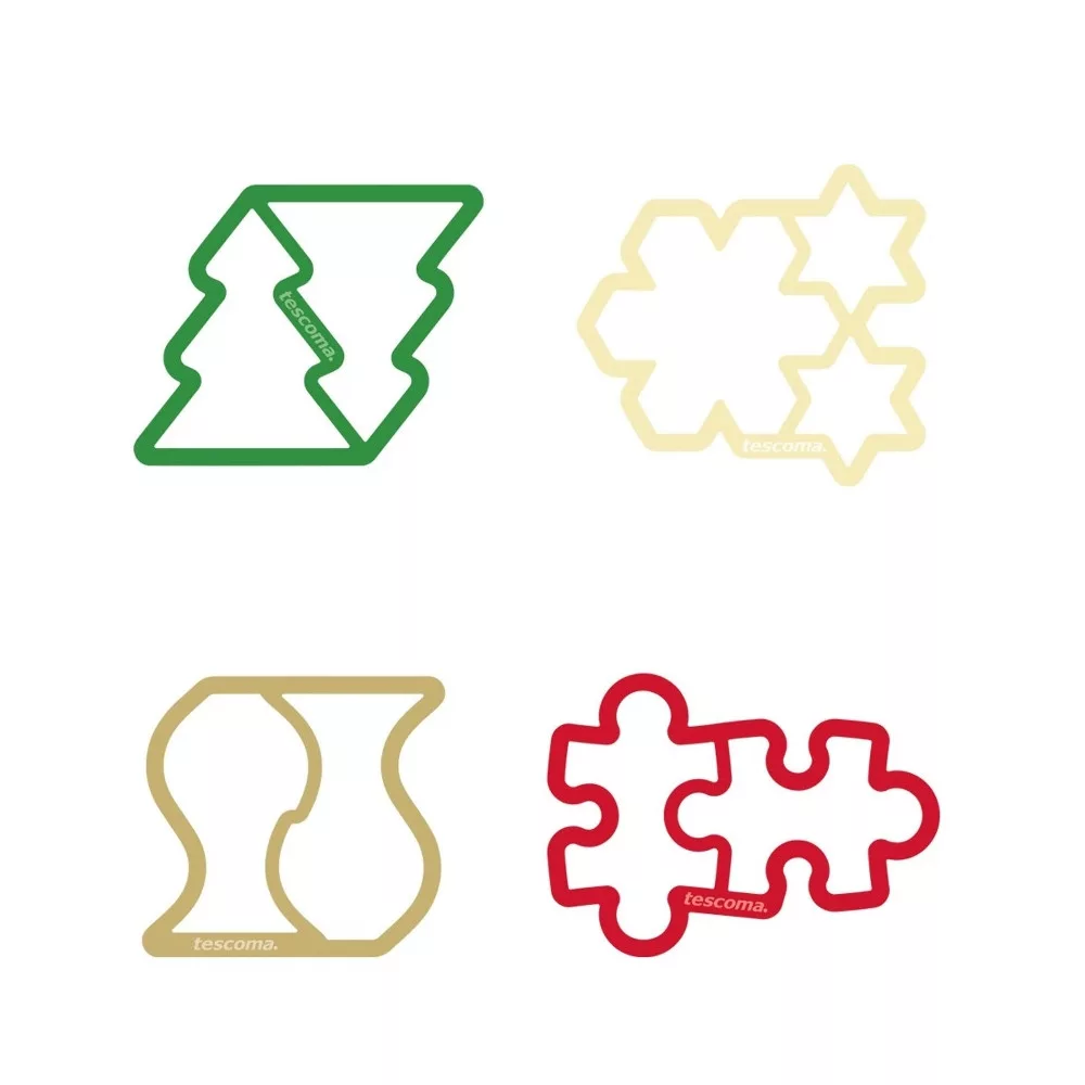 A szett ellenálló, újrahasznosítható műanyagból készült, amely könnyű kezelhetőséget és hosszú élettartamot garantál. A formák élénk, játékos alakjai – puzzle, hal, virág-csillag és karácsonyfa – igazi örömöt visznek a sütés folyamatába, legyen szó ünnepi készülődésről, gyerekekkel való közös sütögetésről vagy kreatív konyhai kikapcsolódásról.