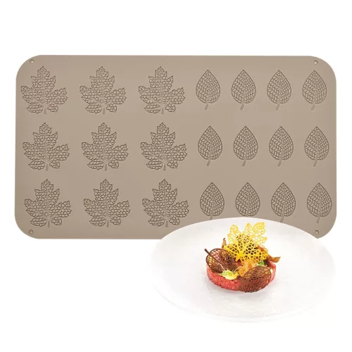 Nagy szilikon dekor forma, ostya forma, tuile forma – Levelek (21 részes)