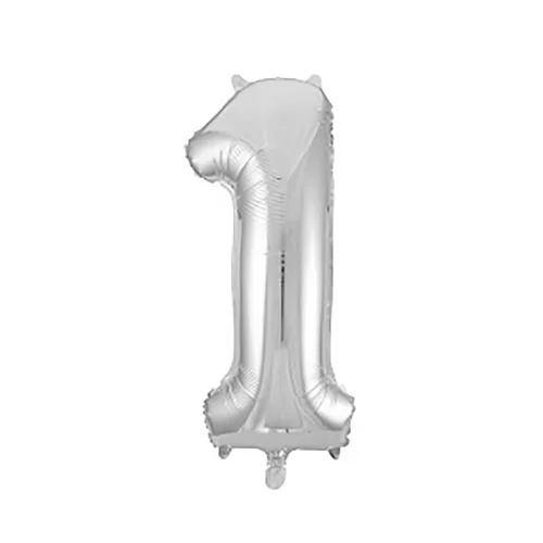 Ezüst színű, szám alakú óriás fólia lufi „1” számmal, melyet használhatsz születésnapra, névnapra, de akár egy céges partykra is használhatod dekorációként.
