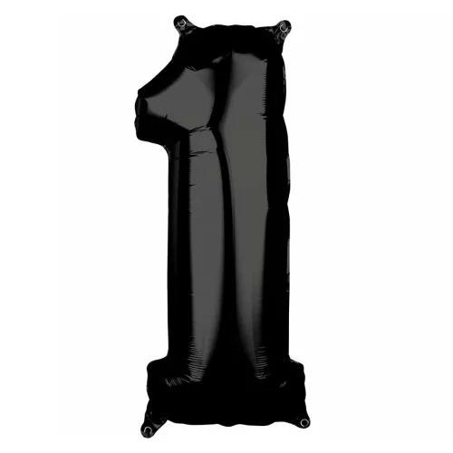 Fekete színű, szám alakú óriás fólia lufi „1” számmal, melyet használhatsz születésnapra, névnapra, de akár egy céges partyra is használhatod dekorációként.