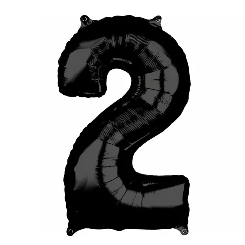 Fekete színű, szám alakú óriás fólia lufi „2” számmal, melyet használhatsz születésnapra, névnapra, de akár egy céges partyra is használhatod dekorációként.