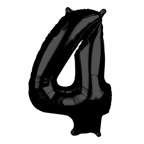 Fekete színű, szám alakú óriás fólia lufi „4” számmal, melyet használhatsz születésnapra, névnapra, de akár egy céges partyra is használhatod dekorációként.