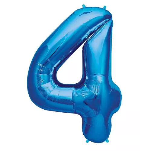 Kék színű, szám alakú óriás fólia lufi „4” számmal, mellyel pillanatok alatt feldobhatod a születésnapi dekorációt.