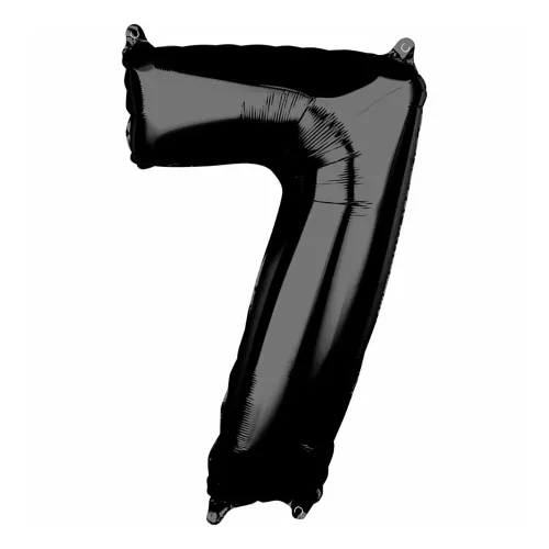 Fekete színű, szám alakú óriás fólia lufi „7” számmal, melyet használhatsz születésnapra, névnapra, de akár egy céges partyra is használhatod dekorációként.