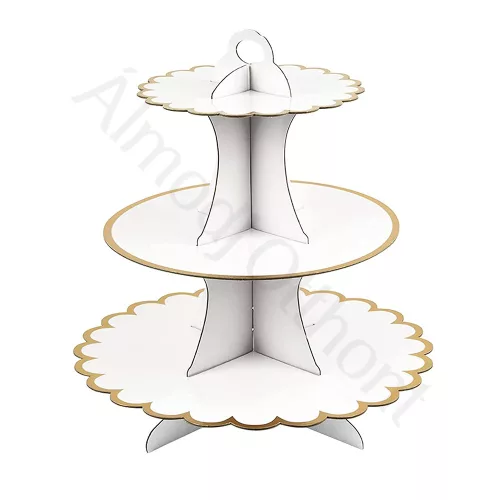 Amennyiben a válaszod igen, úgy válaszd ezt a kartonból készült fehér alapon arany szegélyes muffin állványt.