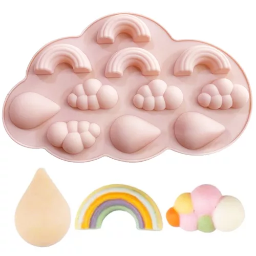 Felhőt, szivárványt és esőcseppeket mintázó szilikon marcipán és fondant mintázó, melynek segítségével akár otthon is el tudod készíteni a süteményekre vagy tortára szánt dekorációt.