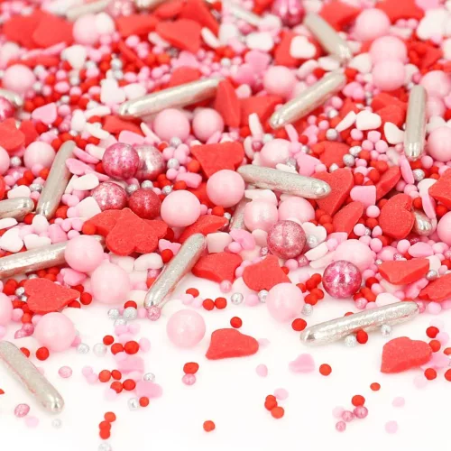 A Szerelmes levél fantázianevű szórócukor keverék romantikus hangulatú, dekoratív megoldás torták, cupcake-ek és desszertek díszítéséhez. A keverék fehér, rózsaszín és piros színű cukordíszeket és cukorgyöngyöket tartalmaz, amelyek látványos, mégis harmonikus összhatást adnak a sütemények felületén.