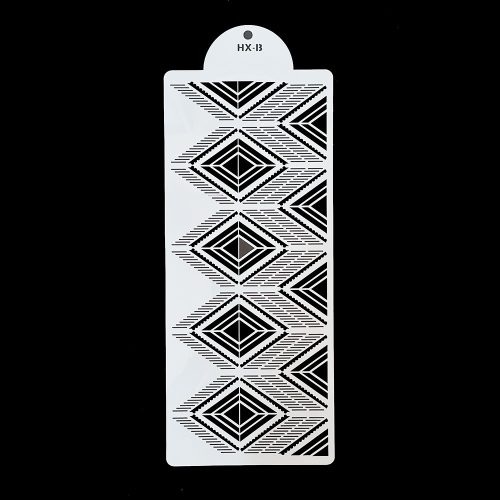 A sablon a szélén található fül segítségével egyszerűen felhelyezhető a kívánt felületre, majd ugyanilyen egyszerűen eltávolítható onnan a minta elmaszatolása nélkül.